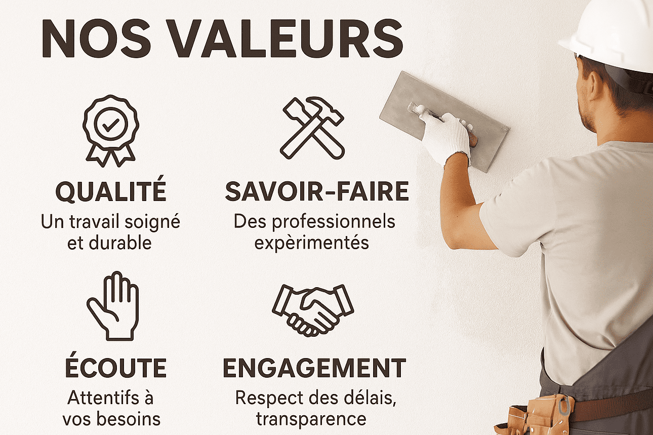 Chez nous, la rénovation est bien plus qu’un simple travail. C’est une passion. Nous croyons en la qualité, la transparence et la collaboration. Chaque projet démarre par une écoute attentive de vos besoins. Nous vous accompagnons à chaque étape pour réaliser votre vision. Ensemble, transformons votre espace!